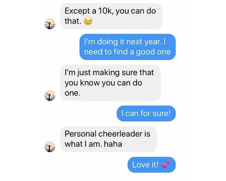 I had mentioned to her a month before that I was going to do two separate 5ks in one day and in true Hanah form, she remembered. Before bed that evening, she messaged me asking how the races went.